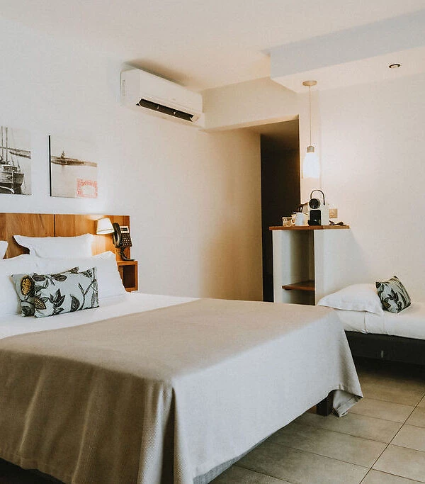 4 suites junior vue jardin, capacité maximale d’occupation : 2 adultes + 1 enfant -12ans ou 3 adultes et 1 bébé-3 ans. Une superficie de 28 m² plus une terrasse privative. Une kitchenette entièrement équipée (plaques vitrocéramiques, four micro-ondes, réfrigérateur, vaisselles). Terrasse. Une salle d’eau avec douche à l’italienne et toilettes séparée.