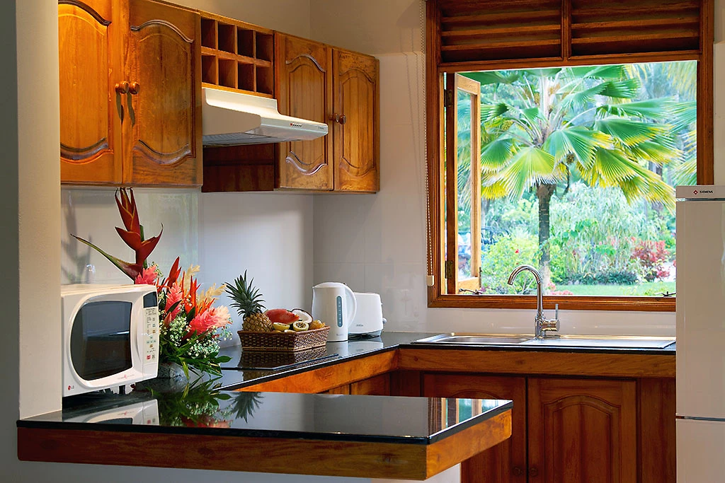 Ces villas de style colonial traditionnel, imprégnées de l’atmosphère enchanteresse des Seychelles, sont nichées à quelques pas seulement de la plage. Avec ses 33 m² et sa grande chambre double séparée, elle peut accueillir 2 adultes, 1 enfant et 1 bébé.