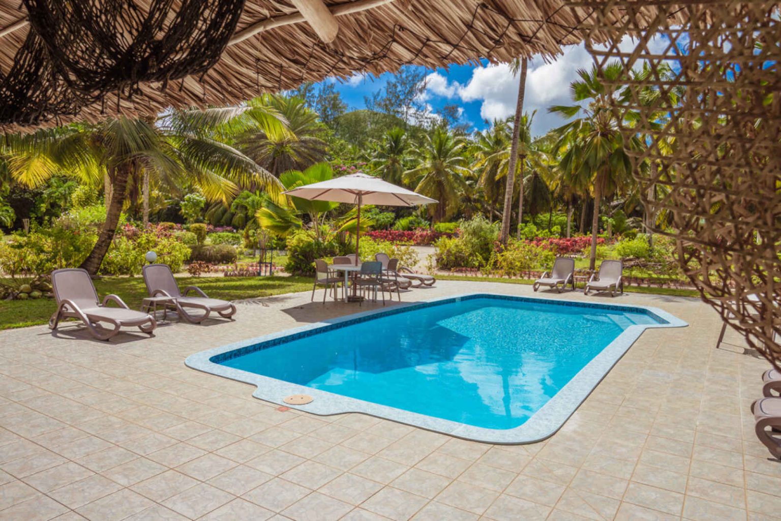 La terrasse privée aménagée avec goût et ombragée par la varangue offre une vue imprenable sur le jardin et un aperçu sur la plage d’Anse Volbert alias Côte d’Or. On pourra y prendre son petit déjeuner, le dîner en soirée ou bien y laisser filer quelques douces heures de la journée en contemplation, bercé par le va-et-vient des vagues et le chant des oiseaux. Tout est réuni pour un séjour inoubliable au paradis.
