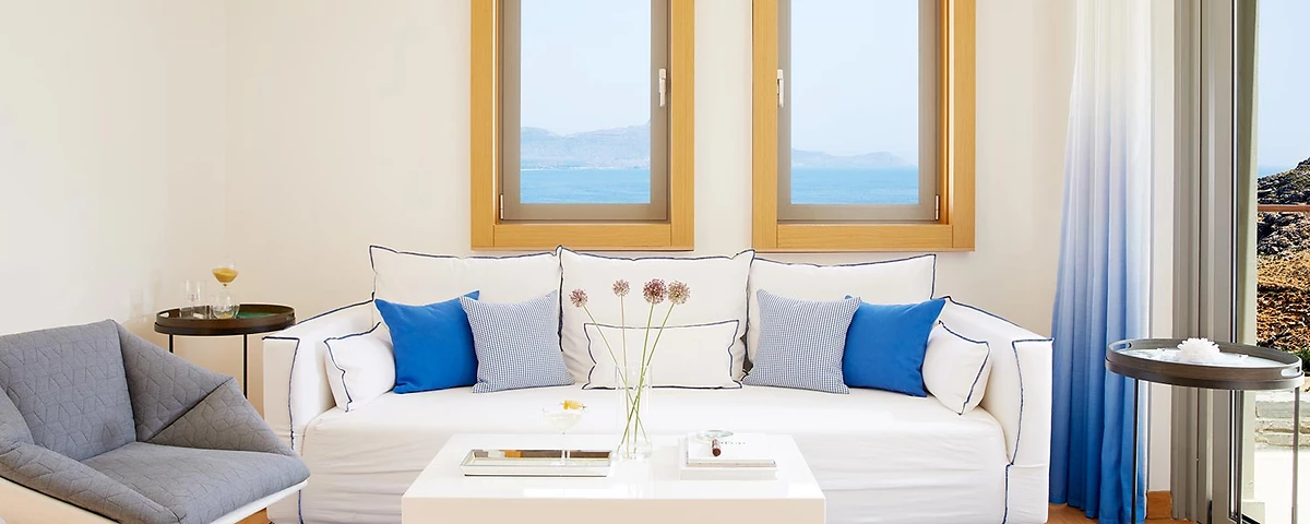 Au total, le Lindos Blu propose 70 chambres, suites et villas avec des volumes généreux, dotées des dernières technologies comme les baignoires à hydromassage ou les matelas sleep experience de Dunlopillo®, mais surtout avec des vues impressionnantes sur la mer et la baie de Vlicha. Machine Nespresso® disponible dans toutes les chambres