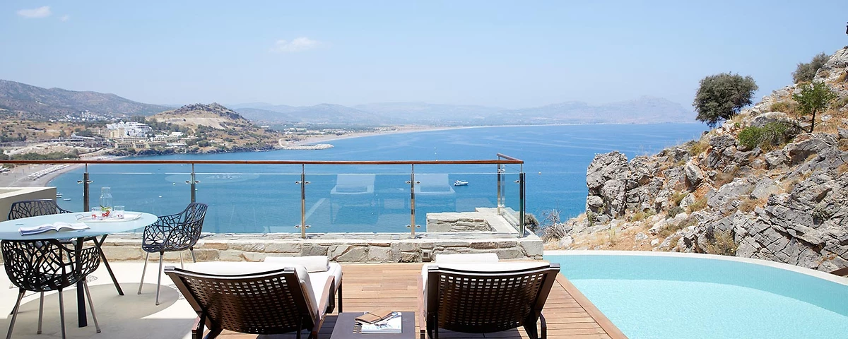 Piscine vue mer, Lindos Blu, Rhodes, Grèce.