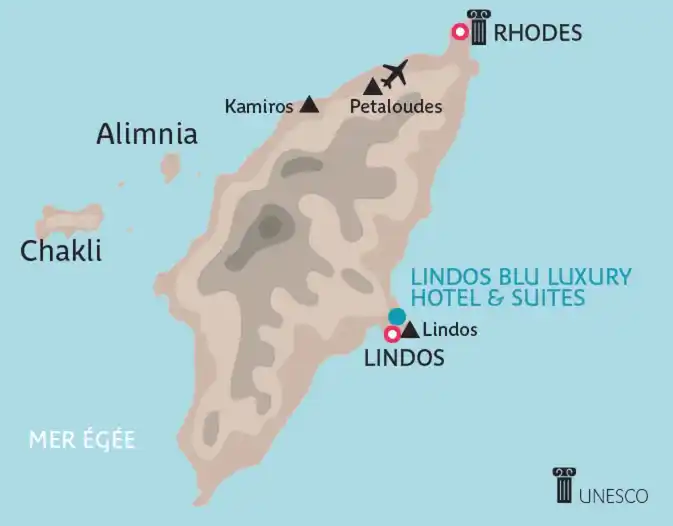 Hotel & Suites, majestueusement niché à flanc de colline, sera le cadre enchanteur de votre séjour. À ses prestations raffinées et de haut vol, il ajoute une localisation idyllique dans la cité de Lindos que beaucoup considèrent comme le plus beau spot de Rhodes. Avec son antique acropole juchée sur un promontoire dominant un village fleuri à la blancheur immaculée, il plonge le visiteur dans une Grèce intemporelle sortie des récits mythologiques.