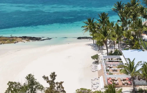 Vue aérienne de la plage, LUX* Belle Mare, Île Maurice