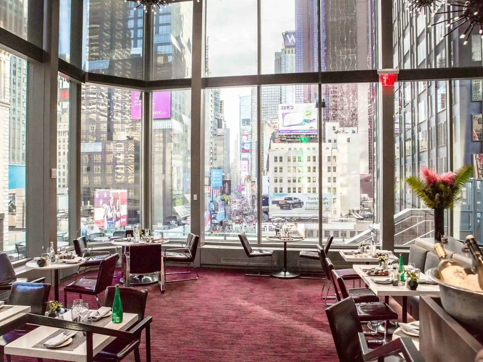 Le restaurant-bar Beast & Butterflies aux influences asiatiques et occidentales et le bar en terrasse offrent une vue panoramique sur Broadway et Times Square.