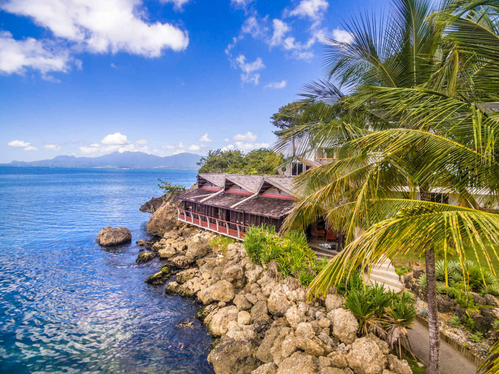 En Grande-Terre, au coeur d'un parc tropical magnifique, en bord de mer, au milieu des palmiers, des lys et des hibiscus, l'ambiance créole vous séduira et vous fera rêver. Les chambres inspirent au repos et au bien-être avec une dominante de blanc, une touche de turquoise et des matériaux nobles comme le bois qui allient élégance et confort.