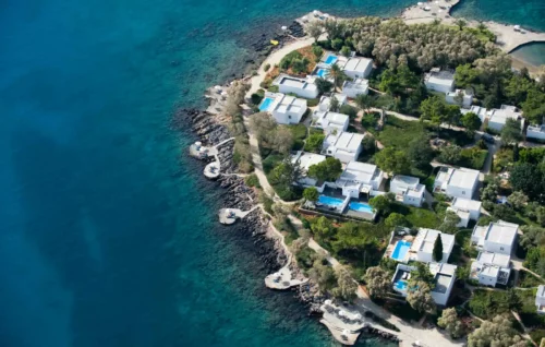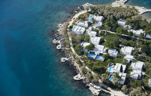 Vue aérienne de l'hôtel, hôtel Minos Beach Art