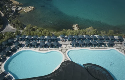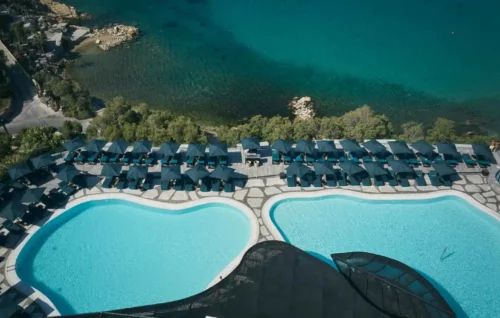 Vue aérienne de la piscine principale, Myconian Imperial, Cyclades, Grèce