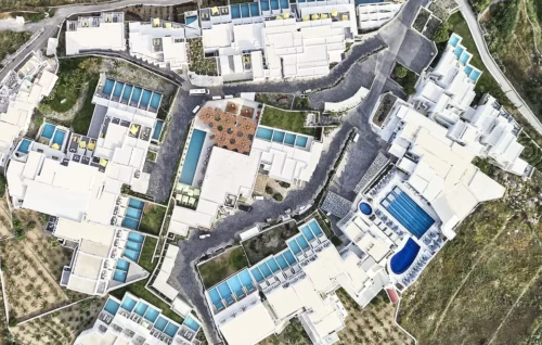Vue aérienne, Myconian Korali, Mykonos, Grèce