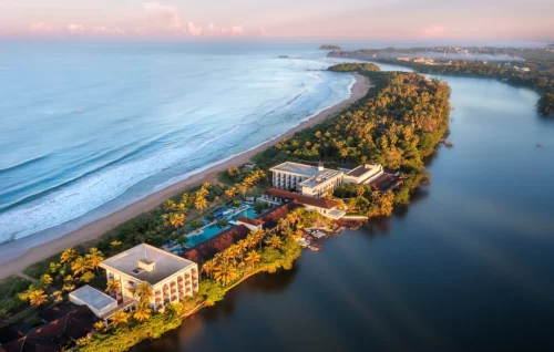 À 90 min de l’aéroport de Colombo, cet établissement est situé en bord de mer entre l’océan Indien et la rivière Bentota Ganga.