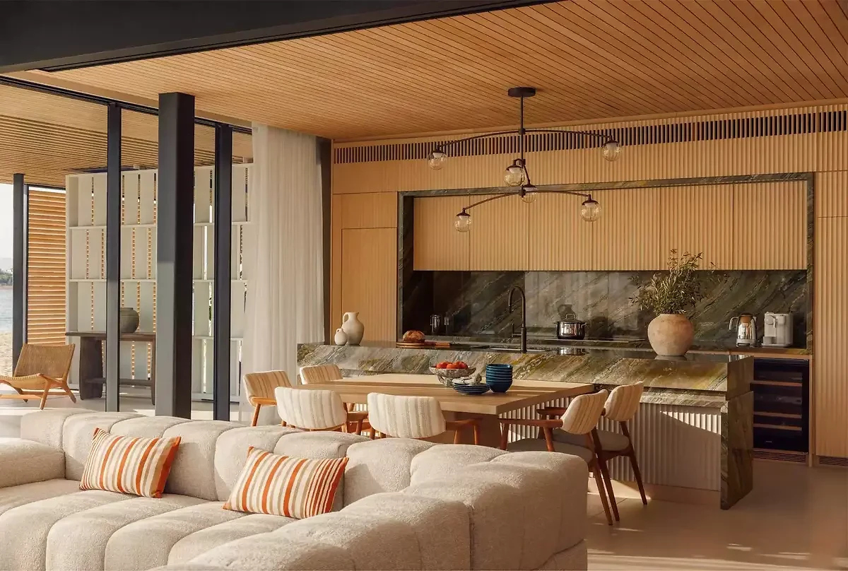 Situé à quelques mètres du sable doré de la plage privée du One&Only Aesthesis, ce refuge décontracté offre un équilibre parfait entre espace et design. Les textures apaisantes et les tons neutres sont contrebalancés par des accessoires et des œuvres d’art aux motifs éclatants. Chaque chambre dispose d’une salle de bains privative dotée d’une douche à effet pluie et d’une baignoire incurvée en pierre naturelle, tandis que le salon central donne directement sur la terrasse privée.