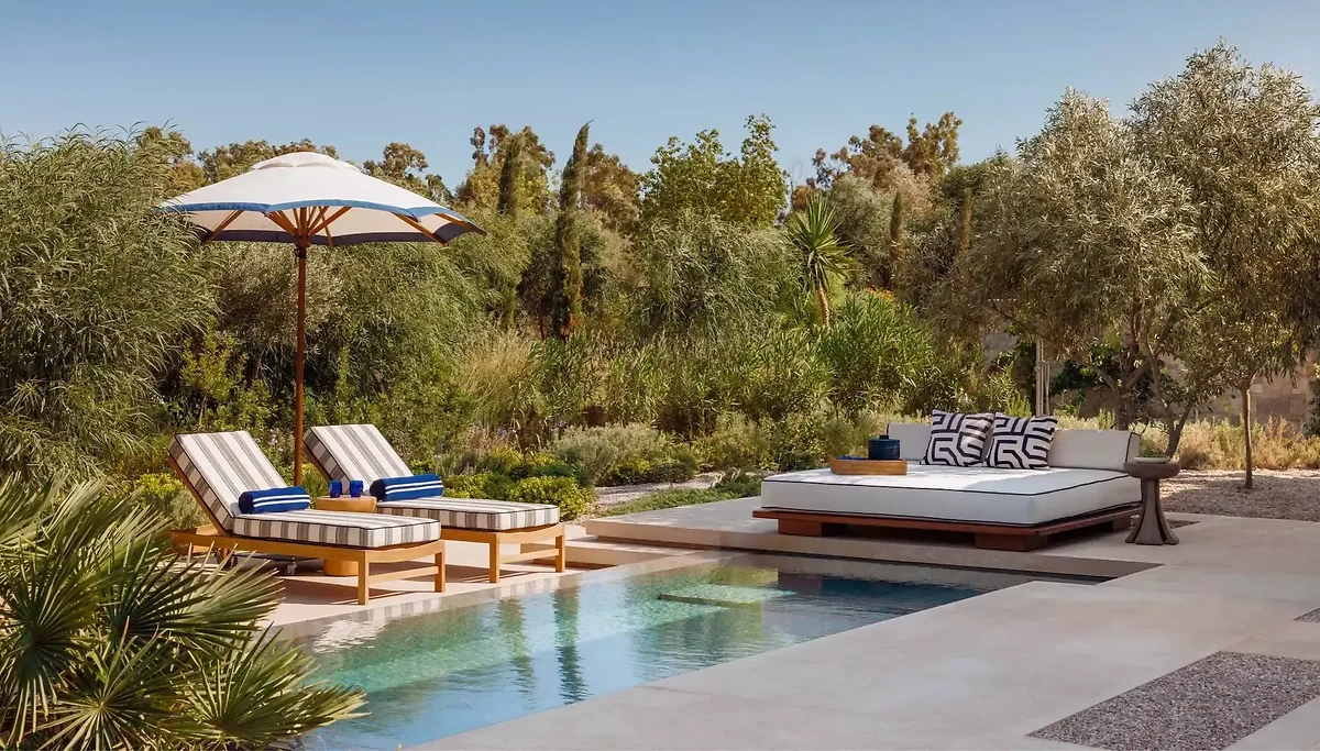 Le bungalow Eran allie une vie de plein air avec des intérieurs artistiques du milieu du siècle qui mettent en valeur les matériaux naturels et les influences locales. Grâce à sa disposition en angle, le bungalow est agrémenté de vastes espaces privés, plantés d’essences méditerranéennes. Il est doté d’une piscine privée en forme de L avec un lit bain de soleil et des transats autour. Votre salle de bains en marbre est équipée de deux vasques, une douche à effet pluie et une somptueuse baignoire en pierre avec vue sur les jardins.