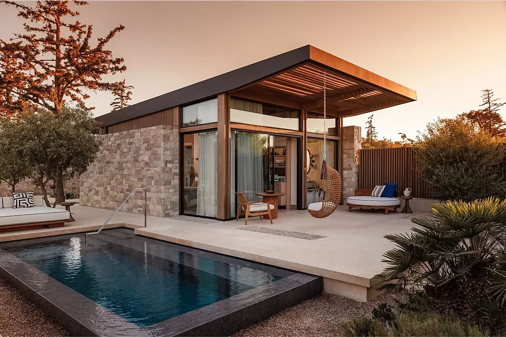 La conception intuitive et étonnante de cette villa de deux chambres rend hommage à l’esthétique moderne du milieu du siècle, avec une abondante nature luxuriante et d’espaces aquatiques qui descendent jusqu’à la mer.