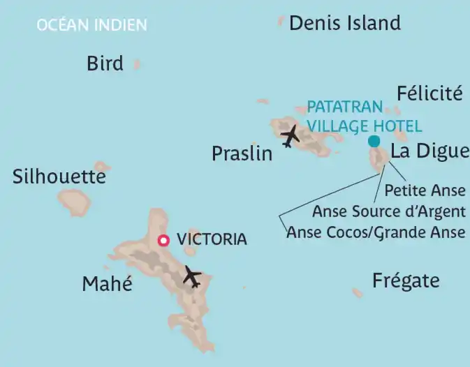 Cet hôtel au décor romantique est déposé sur Anse Patates, l’une des plus belles plages de l’archipel. Il fut le premier à s’implanter sur cette baie où l’on ne trouve que deux hôtels. Ceinte par de somptueux amas de rochers granitiques canelés, l’Anse Patates est idéale pour nager comme pour faire du snorkeling. Carte postale grandeur nature et préservée par son relatif isolement, elle a un délicieux goût de bout du monde. Robinsonnade inoubliable en perspective !