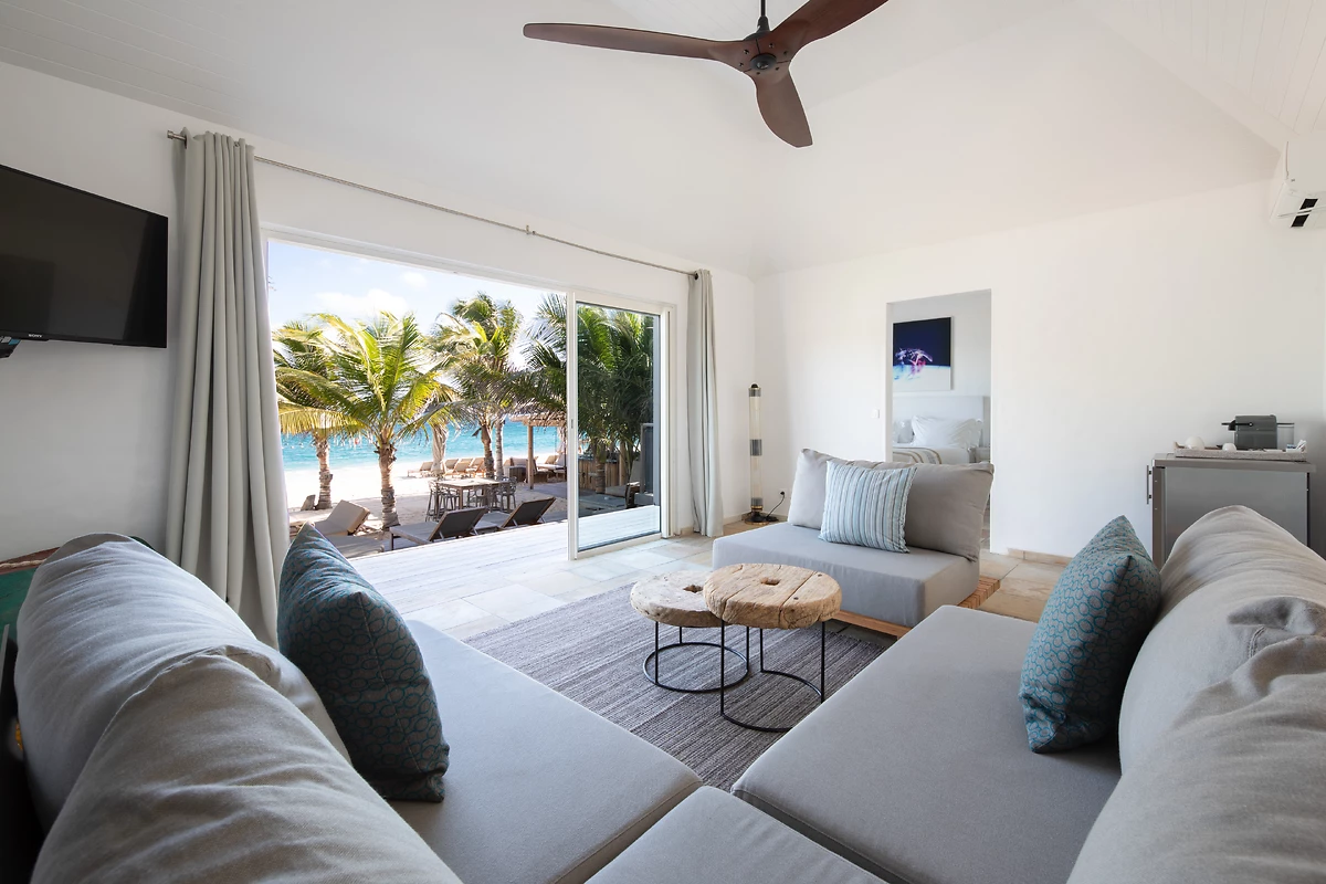 L’hôtel comprend 13 chambres et 1 suite. La villa front de mer est parfaite pour une escapade en famille ou entre amis, sa terrasse privée et le patio extérieur permettent de profiter d’un emplacement de première classe en front de mer et d’un accès direct à la plage. Chaque chambre est équipée de la climatisation à réglage individuel et d’un ventilateur de plafond, ainsi que d’une télévision à écran plat de 40" avec chaînes de télévision directe, de haut-parleurs Bluetooth JBL®, d’un radio-réveil, d’une cafetière Nespresso® avec capsules gratuites, d’un minibar, d’un téléphone, d’un coffre-fort électronique, d’articles de toilette, de peignoirs, d’un sèche-cheveux et de serviettes de plage.