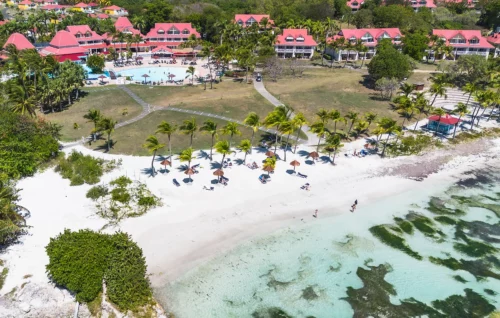 Vue aérienne de l'hôtel et sa plage, Pierre & Vacances Sainte-Anne, Guadeloupe