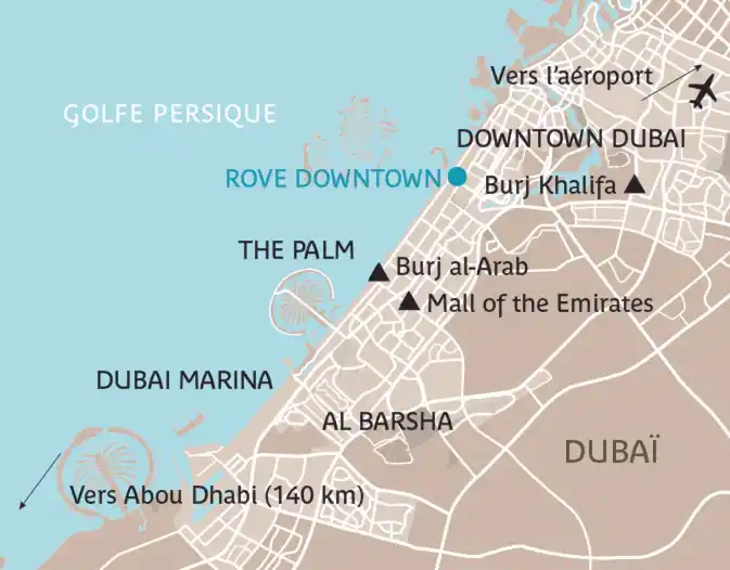 Situé à proximité du quartier le plus animé de la ville, l’hôtel Rove Downtown se dresse à quelques pas de l’emblématique Burj Khalifa. Il est idéal pour les amateurs de shopping grâce à sa proximité avec l’immense Dubai Mall.
