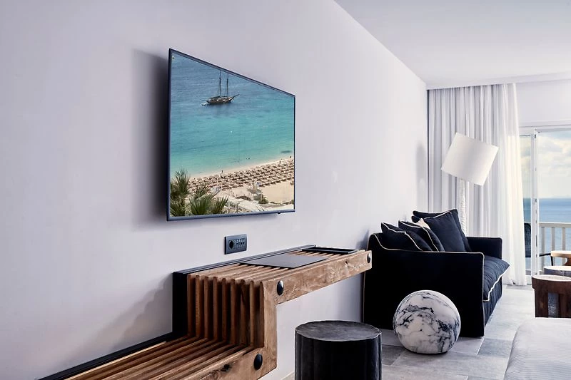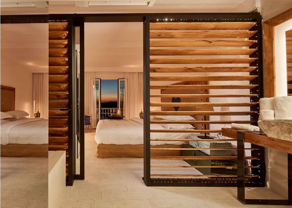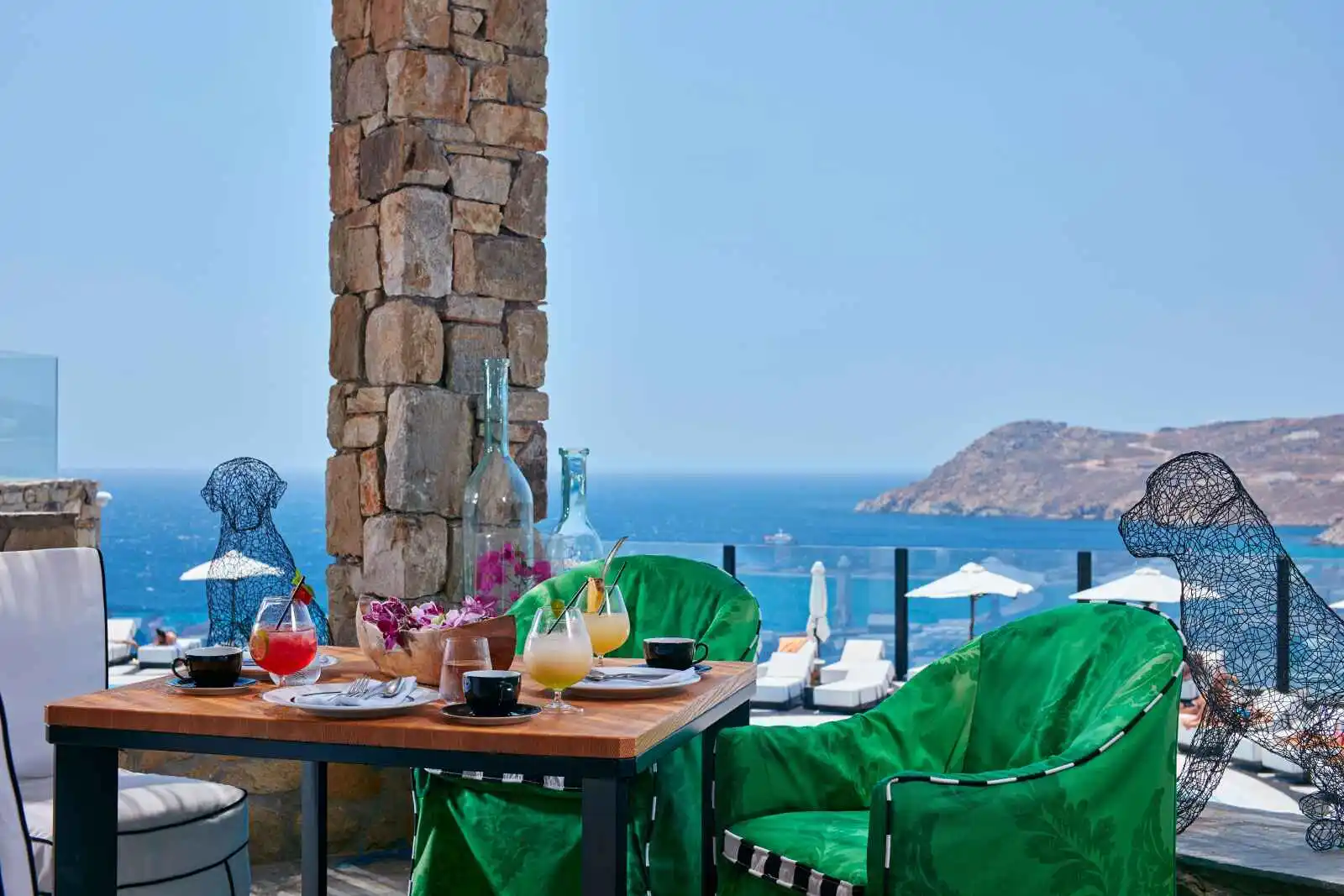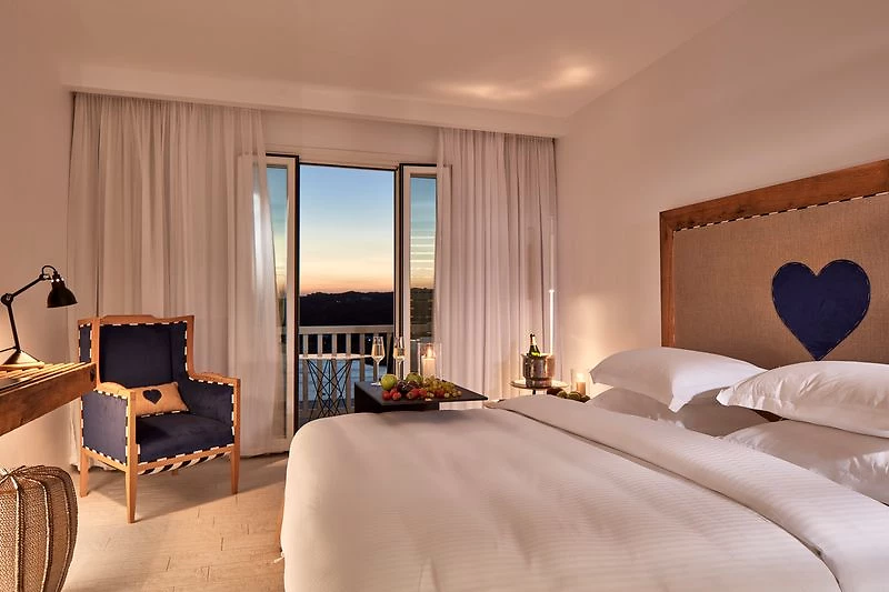 Les chambres et les suites du Royal Myconian sont conçues afin d’offrir une expérience unique alliant confort et esthétisme. Elles s'ouvrent sur de magnifiques vues sur la mer Égée, entourées de murs blancs éclatants et décorées avec du bois flotté et des tissus naturels, évoquant les couleurs estivales des îles grecques. Tout est pensé pour un confort absolu et un séjour inoubliable.