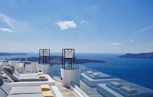 Creusé dans la roche blanche à flanc de falaise, surplombant la caldeira de Santorin, le Sun Rocks, est un hôtel-boutique somptueux offrant à ses hôtes un environnement intime particulièrement romantique dans un décor de rêve. Il a fait peau neuve en 2021.