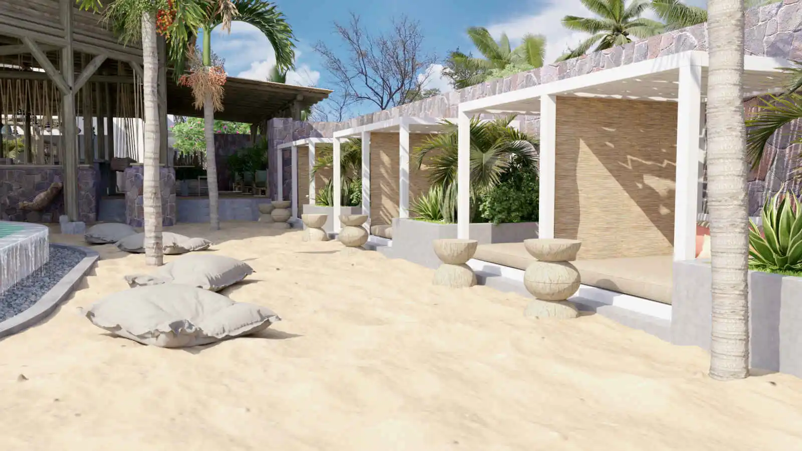 Imaginez un lieu qui invite au lâcher-prise et au temps pour soi : une parenthèse pour déconnecter et se retrouver, en couple, en solo ou entre amis. Côté déco, l’ambiance serait pure et s’inspirerait de la nature, de ses couleurs et de ses matières : bois, pierre, chaume, paille de coco, terracotta, moutarde, vert feuille et du bleu, bien sûr... Le tout travaillé par des artisans locaux.