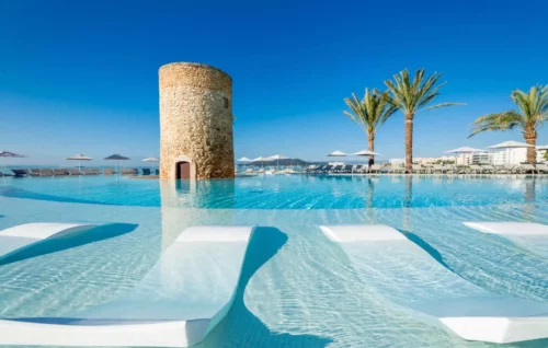 Excellente situation directement sur le front de mer, en bordure de plage et à proximité de la vie nocturne animée qui fait la réputation de l’île, l’hôtel Torre del Mar offre le parfait compromis pour profiter de tous les attraits d’Ibiza. Détendez-vous dans un cadre contemporain récemment rénové, admirez la vue panoramique depuis votre balcon qui porte jusqu’à Formentera par temps clair. Deux restaurants, un Spa, un espace pour les cyclistes complètent les équipements de cet établissement qui conviendra aux couples et amis.